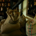 Lviv Coffeemanufacture ist eine Rösterei, in der man bei der Röstung zuschauen kann und guten Cafe trinken kann.